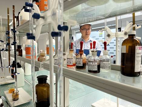 (袁歡欣在化學(xué)藥水分析調研中)