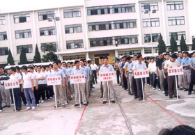 集團團委、工會2003年聯合主辦了超聲集團首屆職工體育運動會。運動會曆時五個多月,共設立了十個(大)項目的比賽,參賽選手近600人次。圖爲2003年4月份之開(kāi)幕式。下圖爲集團公司副總經(jīng)理劉永锴同志宣布運動會開(kāi)幕。