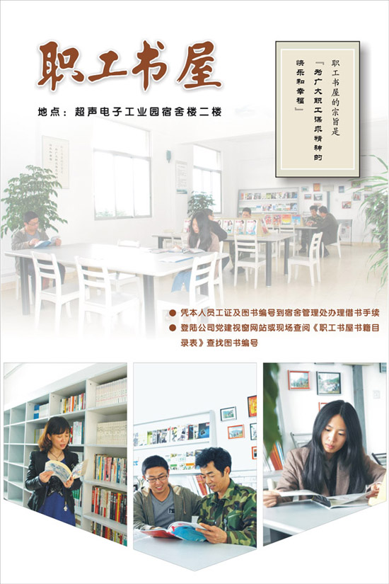 “職工書屋”是超聲公司集信息、學(xué)術、智慧的活動中心,也是爲全體超聲員工提供一個追求精神财富、總結智者經(jīng)驗的學(xué)習平台。