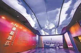 本次展覽位于深圳當代藝術與城市規劃展覽館南側的四樓和五樓,以6300多平方米的展陳面(miàn)積全面(miàn)、生動和立體地展現廣東改革開(kāi)放40年的壯闊曆程和輝煌成(chéng)就。一進(jìn)入展覽入口,“大潮起(qǐ)珠江”主題片氣勢磅礴、引人入勝,超大視窗、