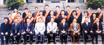 第二排左六爲獲評爲第六屆汕頭市十佳青年科技帶頭人之一的超聲覆銅闆廠的黨支部書記、總經(jīng)理莫翊斌先生